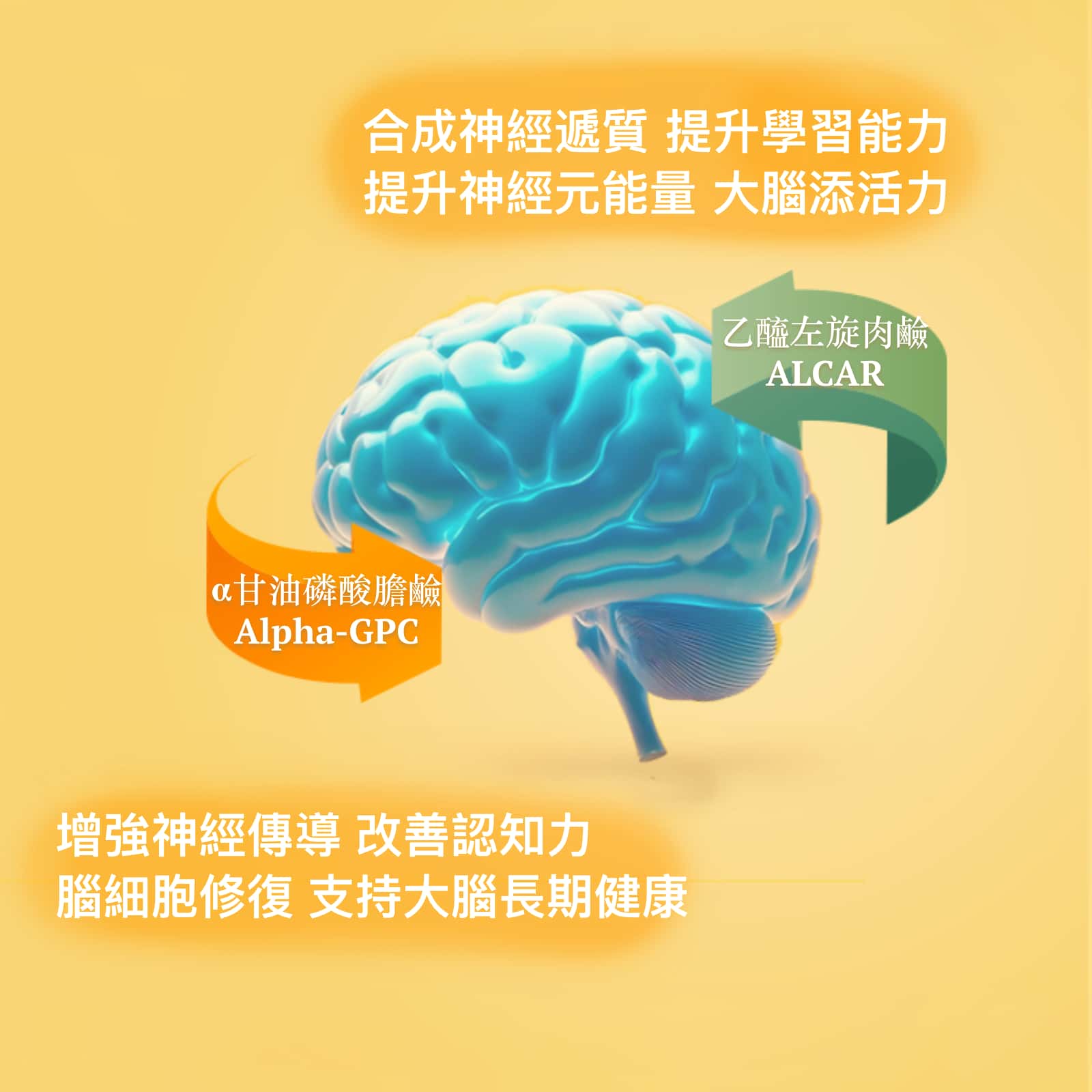 • 独特优势:比普通胆碱源生物利用率更高,无明显胃肠不适,适合长期服用。